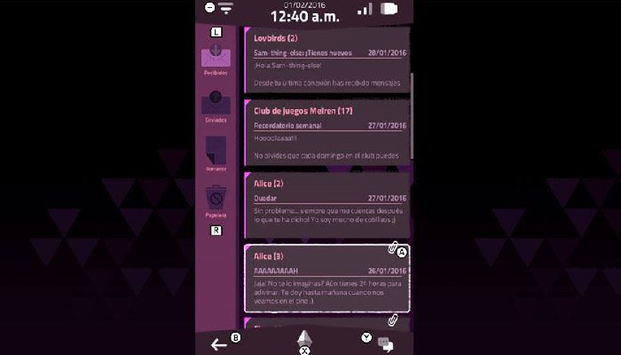 Y eso es un punto en el que creo que el título falla. Al hacerse tan cercano a la historia, dando al jugador el papel tanto de personaje ficticio que se encuentra el móvil como el de jugador en sí, el vernos forzados a violar la intimidad de Sam, el chico dueño del teléfono perdido, llegando hasta el punto de hacernos pasar con él para hacer avanzar la historia en un momento que, sin querer entrar en spoilers, es bastante peliagudo. Si, desde el primer momento se te da la oportunidad de "borrar la memoria del teléfono" y así ver los créditos del juego (aunque es una función escondida que no queda claro si es una función "de juego" o opciones como la de cualquier juego para reiniciar la partida guardada), pero no nos engañemos, aquí hemos venido a jugar y la única manera de hacerlo es invadir a intimidad de Sam y tomar la iniciativa por él en algunos momentos.