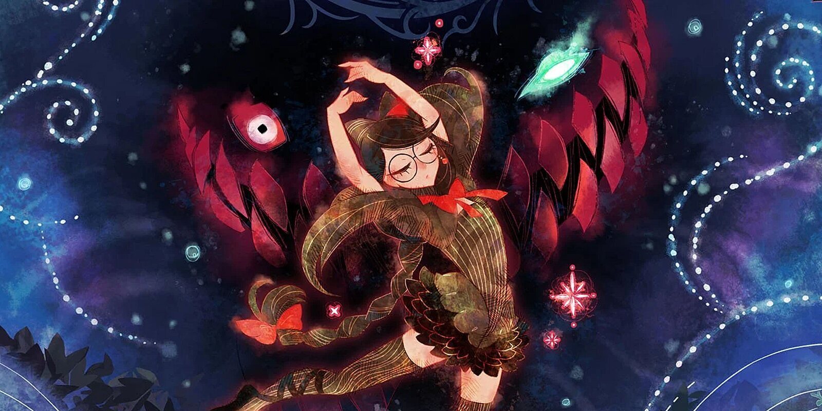 Esta inocencia de nuestra pequeña Cereza se corresponde también con el universo que le rodea. El bosque al que se aventura está lleno de color con una visión infantil y estilizada de los árboles y estructuras con las que se encuentra. La misión es conocer mejor el entorno, aprender a interpretar el mundo mágico como algo tangible que pueda controlar para el futuro. Pero por ahora es sólo una niña, y es parte de la gracia conceptual que persigue la obra.