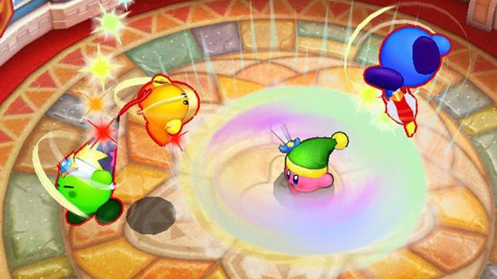 La sencillez de sus minijuegos se traslada a las mecánicas, pues los Kirby apenas ejecutan media docena de movimientos diferentes. Su repertorio abarca el salto, el vuelo, el ataque en el aire, los golpes cargados, los combos simples y la posibilidad de lanzar tanto enemigos como objetos. En un juego en el que todo funciona a golpes con los que fastidiar a los contrarios, la diversidad radica en las 13 habilidades disponibles. Como en los videojuegos de la saga principal, Kirby podrá transformarse en escarabajo, espadachín o en el dueño de un temible mazo. Este abanico de dones constituye una suerte de plantel de personajes, cuyo manejo es fluido y plenamente satisfactorio gracias al sello Nintendo. HAL Laboratory ha optado por pulir unas cuantas formas en lugar de incluir todo el repertorio de transformaciones de Kirby. La pega es que 13 es un número raquítico teniendo en cuenta que hay más de 40 poderes, sin contar las habilidades combinadas.