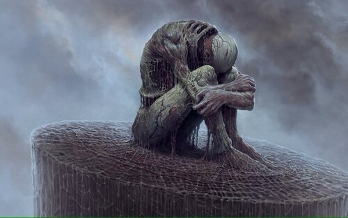 ScornLa principal virtud de 'Scorn' es su dirección artística, altamente influenciada por las obras de H.R. Giger (creador del mítico xenomorfo de 'Alien') y del menos conocido Zdzislaw Beksinski. El polaco ha estado muy presente últimamente en el mundo de los videojuegos, habiendo servido de inspiración a otros títulos como 'Returnal' o 'The Medium'. El universo creado por el estudio serbio es tan atractivo como repulsivo, si es que eso es posible. La dirección artística es tan potente que no necesita más. Toda la narrativa nace de nuestras acciones y del entorno que nos rodea. Aquí ni siquiera tenemos descripciones de objetos en las que rebuscar para profundizar un poco más en el lore, ya que no aparece ni una palabra en pantalla más allá del menú principal durante todas las horas que dura la aventura (la duración es un tema delicado, ya que depende mucho de la suerte y perspicacia de cada uno a la hora de moverse y resolver cada puzle). Si alguien quiere saber algo -poco- más sobre este tétrico universo, tiene que echarle un ojo al libro de arte, que sólo por el trabajo artístico ya vale la pena.