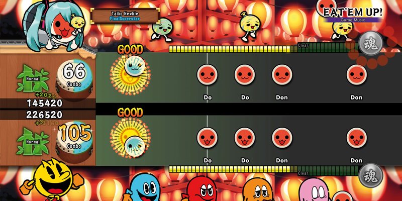 Pues en la teoría puede ser, pero en la práctica y dependiendo de la dificultad, puede convertirse en un verdadero infierno. La clave de este juego radica en conocer perfectamente el ritmo de la canción y que, casi con los ojos cerrados, nosotros sepamos reconocer los puntos en los que el juego nos va a pedir que golpeemos el taiko (que no es otra cosa que un tambor que se usa en la música tradicional japonesa). Obviamente, hay que estar pendiente de la pantalla, ya que habrá que saber si golpear el centro del tambor, los laterales o hacer un redoble.