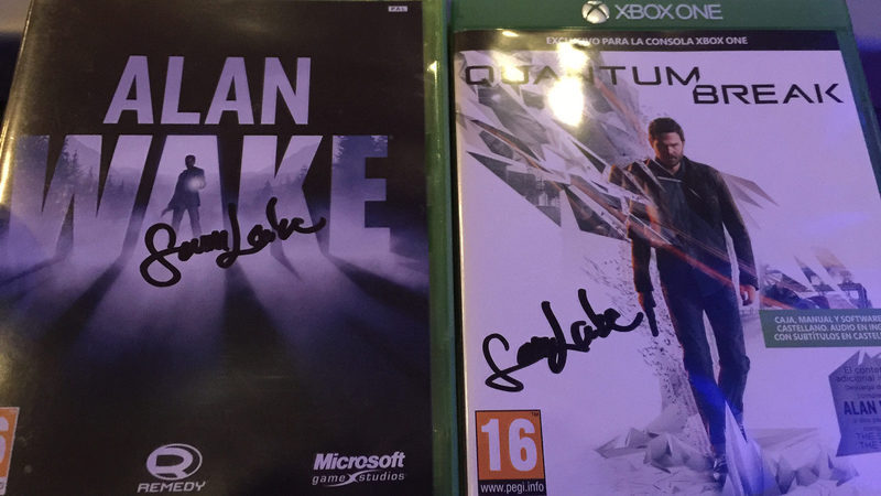 Sin embargo, no os he contado lo mejor de todo. Y es que unos minutos antes, de subir al escenario, Sam Lake apareció en el auditorio y se sentó justo delante mío, momento que aproveche cual ave de rapiña para acercarme sigilosamente y pedirle amablemente que me firmará las portadas de 'Quantum Break' y 'Alan Wake'. No solo eso, sino que mientras me las firmaba muy amablemente, le dije por la bajini y con mi inglés de "Oxford" que tenían que hacer una segunda parte de 'Quantum Break', aunque únicamente conseguí sacarle una pequeña carcajada. Había que probarlo, ¿no?