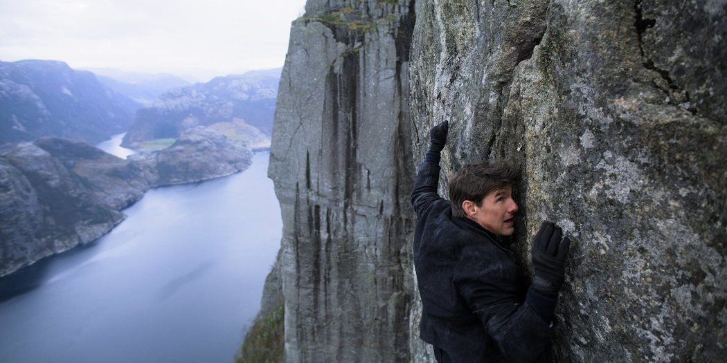 Para grabar esto, un cámara saltaba junto a Cruise hacia atrás "únicamente con su sentido del instinto", destaca McQuarrie a la hora de hablar cómo ese profesional fue capaz de mantener el plano de Cruise durante la caída libre. Esta secuencia se grabó en Arabia Saudi, el actor destaca que era "el único lugar donde podíamos hacerlo", en relación a la legalidad de esta hazaña cinematográfica.