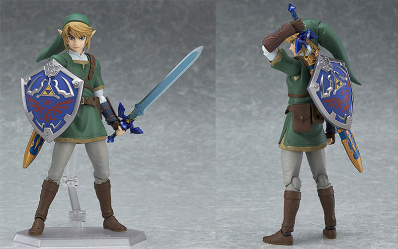 El héroe de Hyrule se presenta en una figura articulada muy detallada que en su edición sencilla incluye bastantes extras. Se acompaña de tres expresiones faciales intercambiables -mirada seria, grito y dientes apretados-, escudo hyliano que se puede sujetar tanto en la mano como colgar de la espalda, espada maestra y base y soporte para la figura.