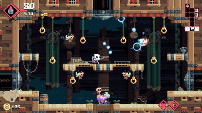 Al ver 'Flinthook' en movimiento rápidamente recuerda a grandes referentes del roguelike moderno como 'Rogue Legacy'. Desde el pixel art hasta el diseño de las distintas salas y sus múltiples caminos recuerdan a la obra de Cellar Door Games. El elemento diferenciador aquí es una acción rápida y certera que apela a la agilidad pura y que recuerda a niveles de perfección en este ámbito alcanzados por pocos estudios, como puede ser el caso de Vlambeer.