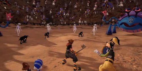 Cerca del final del vídeo vemos por primera vez a Axel y Kairi empuñando sus Llave Espada en medio de una batalla contra todo tipo de enemigos: sincorazón, incorpóreos y nescientes. También aparece Xehanort con el resto de sus oscuridades, todas encapuchadas para que no sepamos todavía de quiénes de se tratan. 'Kingdom Hearts III' llegará a PS4 y Xbox One el 29 de enero de 2019.