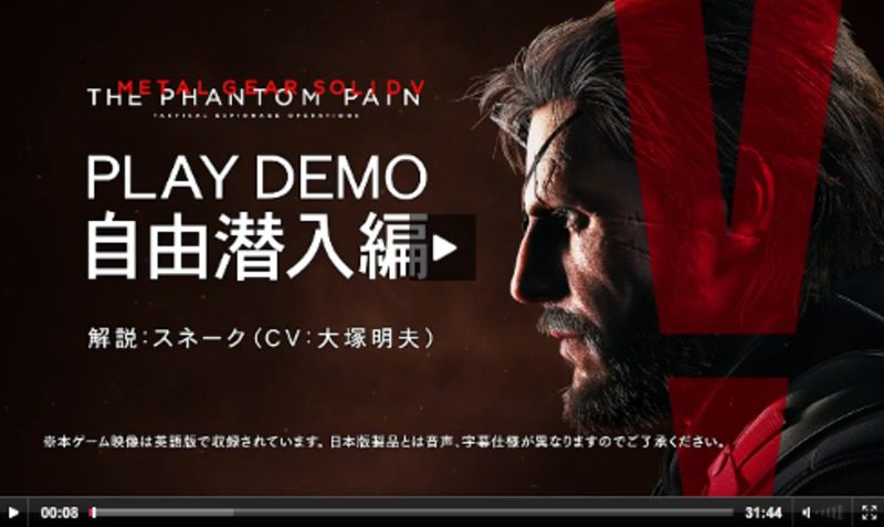 "Ahora podéis vislumbrar el nuevo concepto de "juego de infiltración libre en mundo abierto". También quise grabar el ataque en medio de la noche, y la escena del tanque, pero entonces no habríamos terminado nunca. Por favor, disfrutad el juego a vuestra manera cuando salga a la venta. Decidid el estilo, el transporte, el clima, el tiempo, las armas, el equipo, id solos o con un amigo... Jugando las misiones OPS veréis crecer la Mother Base según recojáis vehículos, recursos y personal. Próximamente, creo que podremos mostrar una demo en desarrollo sobre el crecimiento y la expansión de la base, aunque no sé cuándo podrá ser".