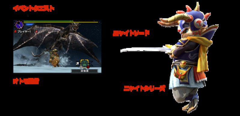 Por el momento no se han dado muchos detalles más allá de lo que veis en la imagen, pero sabemos que desde el próximo 15 de enero los jugadores nipones que tengan el título podrán tomar el rol de Kushala Daora con la Knyaight Sword así como otras armas Knight para el Felyne. El juego más vendido de 2015 en Japón seguirá creciendo este año 2016.