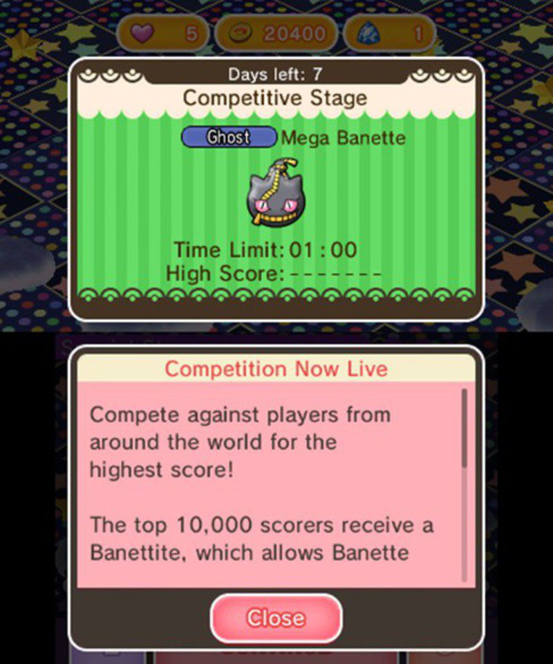 Como siempre, las reglas se basan en clasificaciones online; las 10.000 mejores puntuaciones al capturar a esta criatura, 20.000 en Norte América y 50.000 en Japón conseguirán la Banettita (la Mega Piedra que permite megaevolucionar a Banette). Cabe decir que se trata de un evento temporal que terminará el próximo 7 de mayo, es decir, el próximo jueves, así que no dudes en comenzar hoy mismo a practicar en esta fase porque cada vez hay mejores jugadores y colarse entre los 10.000 mejores (si vives en Europa) no es tan sencillo como hace unas semanas.