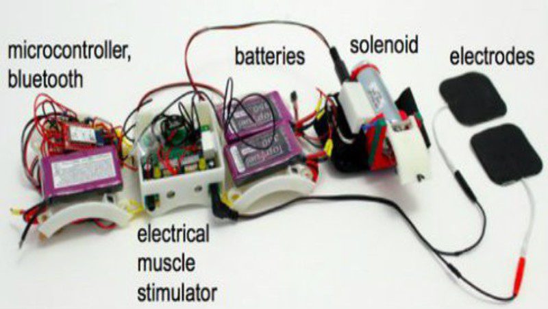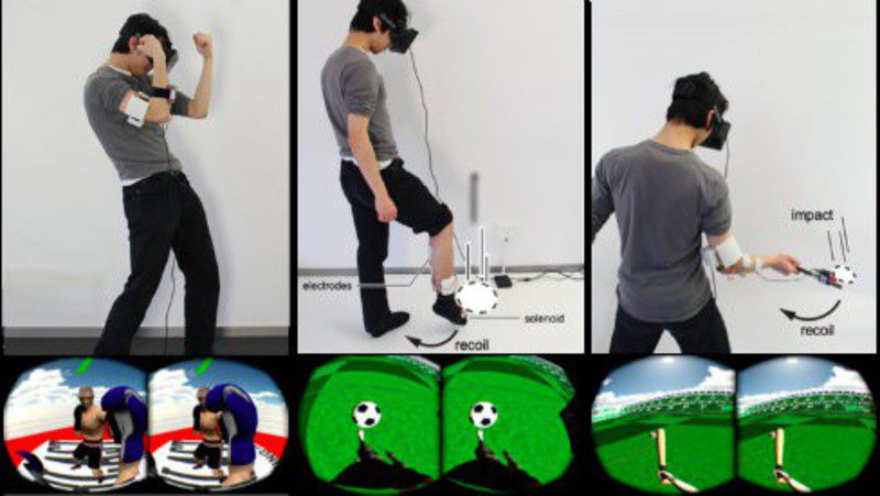 Y aquí es donde entra el sistema Impacto de Hasso Plattner Institute. Dejando a un lado en qué consiste el proyecto de investigación, que podéis consultar aquí, este complemento a la Realidad Virtual se presenta como una especie de máquina de tortura a pequeña escala, que emplea solenoides y descargas eléctricas para simular el efecto de un impacto del juego en el mundo real. Alucinante, ¿verdad?