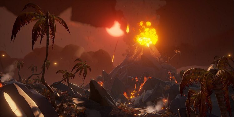 Una semana, ese es el tiempo extra que necesita la compañía británica para resolver la situación y lanzar 'Forsaken Shore'. Un contenido adicional que, debemos recordar, será completamente gratuito. De hecho, será ya el tercer gran contenido para el juego que llega, e introducirá una nueva región al ya de por sí basto mundo de 'Sea of Thieves'. En este caso, hablamos de 'Devil's Roar', que como podéis ver en las diferentes imágenes de esta noticia, hace referencia a nada más y nada menos que un peligroso volcán que entrará en erupción. Algo que implicará tener que esquivar las correspondientes lluvias de rocas y géisers varios.