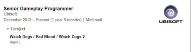 Según el curriculum profesional online de un programador senior de jugabilidad de Ubisoft, 'Watch Dogs 2' ya estaría en desarrollo por la compañía. Julien Risse, que así como se llama este programador que trabaja en el estudio de Ubisoft en París, ha listado la secuela aún no anunciada en su perfil de LinkedIn, junto a la primera entrega, y su DLC, 'Bad Bloods', aunque eso sí, no ofrece más pistas.