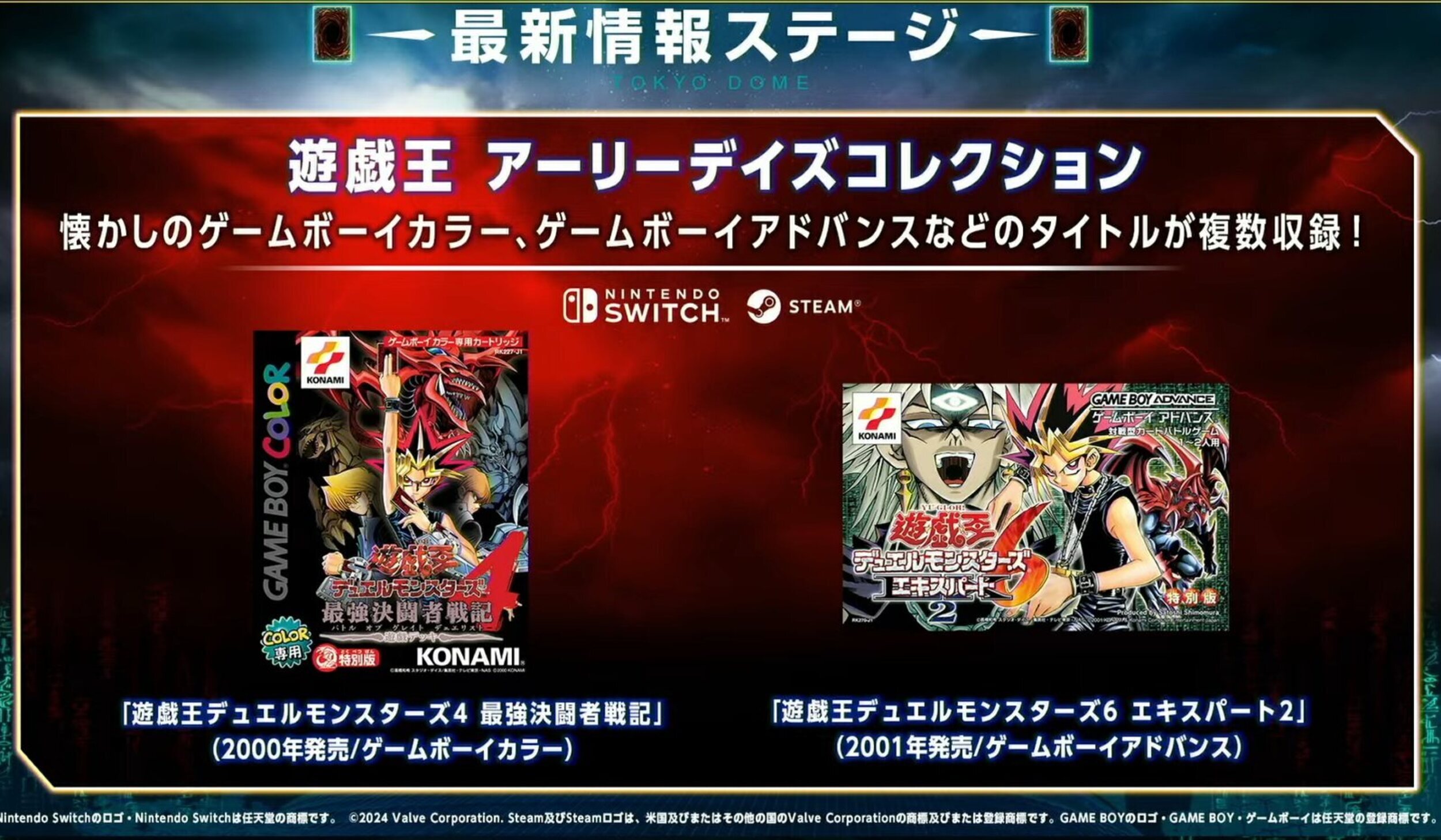 Dos entregas se han confirmado por el momento para ser parte del recopilatorio. Estos son 'Yu-Gi-Oh! Duel Monsters 4: Battle of Great Duelist', publicado originalmente en Game Boy Color; y 'Yu-Gi-Oh! Duel Monsters 6: Expert 2', que vio la luz en Game Boy Advance. Parece lógico pensar que veremos al menos el resto de entregas de Color y probablemente unas cuantas de Advance, pero por el momento todo es una incógnita.