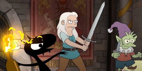 Son anécdotas pero siempre gustan en este tipo de series. No hace falta decir que los trazos y personajes son 'Matt Groening Style' 100 %, pero, más allá de eso, hay ocasiones en la que 'El Desencanto' nos recuerda a 'Los Simpons' y 'Futurama' por algo más que el diseño de los personajes. Muchas son las voces que hablan de que el dibujante hizo a Elfa, la novia de Elfo, de una manera que recuerda a Lisa Simpson, incluso dando por hecho que ni hecho aposta se parecerían tanto. También hay guiños para Fry, protagonista de 'Futurama'. Vemos como en el castillo, en escenas en donde aparece una estantería con pelucas en donde hay una exactamente igual que el peinado del repartidor de pizzas.