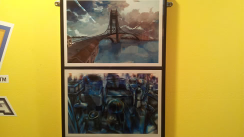 También se podían apreciar varios bocetos artísticos de la franquicia con algunas ubicaciones emblemáticas, como el ya mítico puente colgante de 'Pokémon Blanco' y 'Pokémon Negro' o el Bosque Blanco y la Ciudad Negra del mismo juego que ya pertenece a la anterior generación.