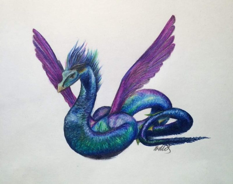 ¡Continuemos con las criaturas XXXX! En esta ocasión, vamos a hablar del Occamy, cuya estética recuerda mucho a la de una serpiente alada. Mas su cuerpo está emplumado, y tiene dos patas con alas, con las que al abrirlas puede llegar a medir hasta cuatro metros de ancho; su largo suele ser de unos quince metros. ¡Pero es coranáptico! Es decir, que puede crecer o encoger de forma mágica para adaptarse al entorno del que dispone.