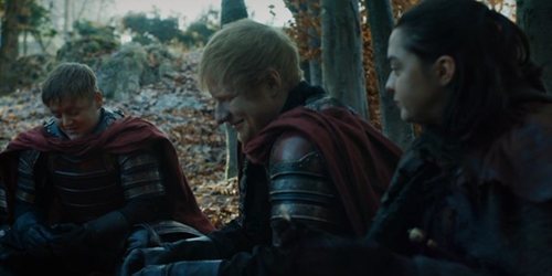 Ed Sheeran cree que los fans que vieron la escena desearon que su personaje muriera entre sufrimientos. "Estoy seguro de que muchos piensan que fue brutalmente, muy brutalmente, asesinado, pero creo que él está ahí fuera. Fue divertido estar en 'Juego de Tronos', pero definitivamente creo que deberían haberme matado en el episodio. Estoy seguro que eso habría servido de redención para los fans a los que no les gustó", ha explicado Sheeran.
