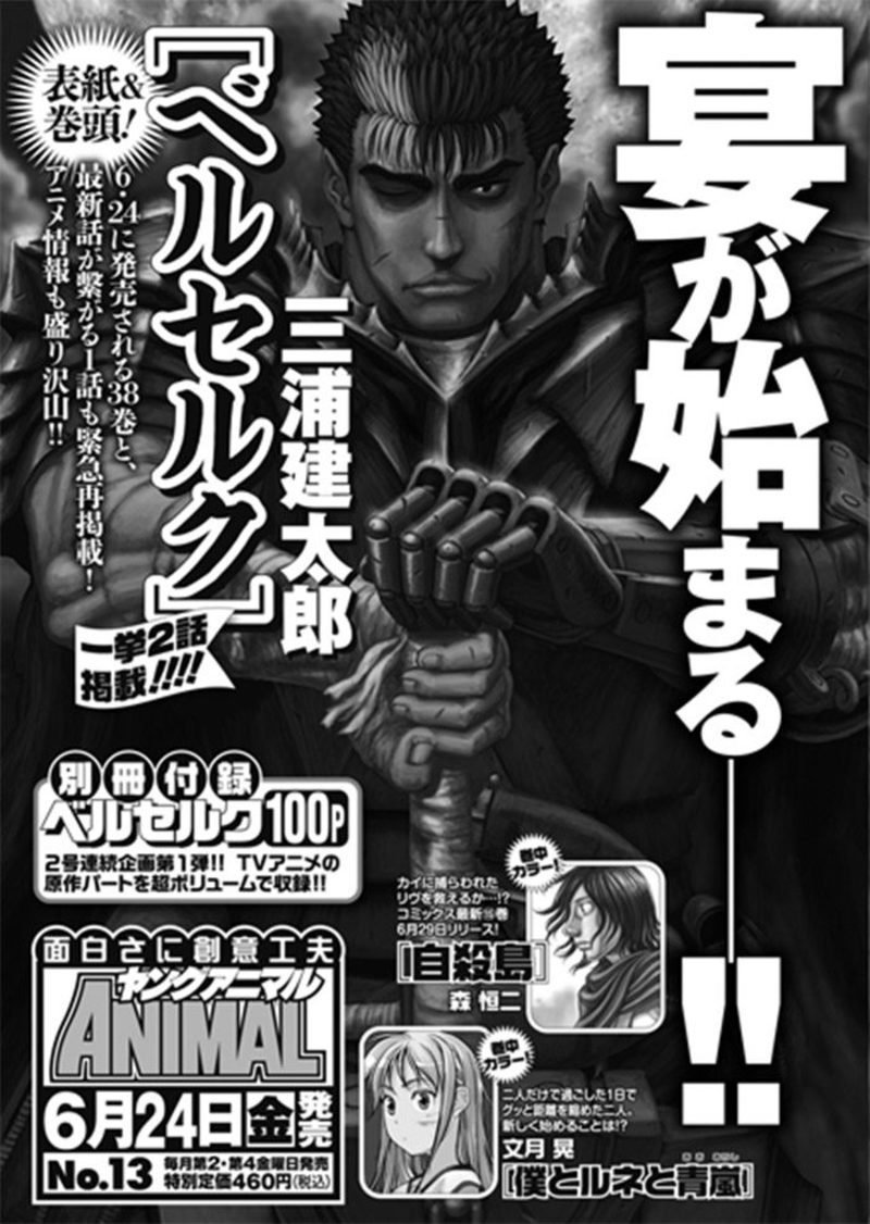 El día 24 de junio también saldrá a la venta en Japón el tomo recopilatorio número #38 de 'Berserk'. Hasta la fecha no se publicaba un nuevo volumen desde hace más de tres años.